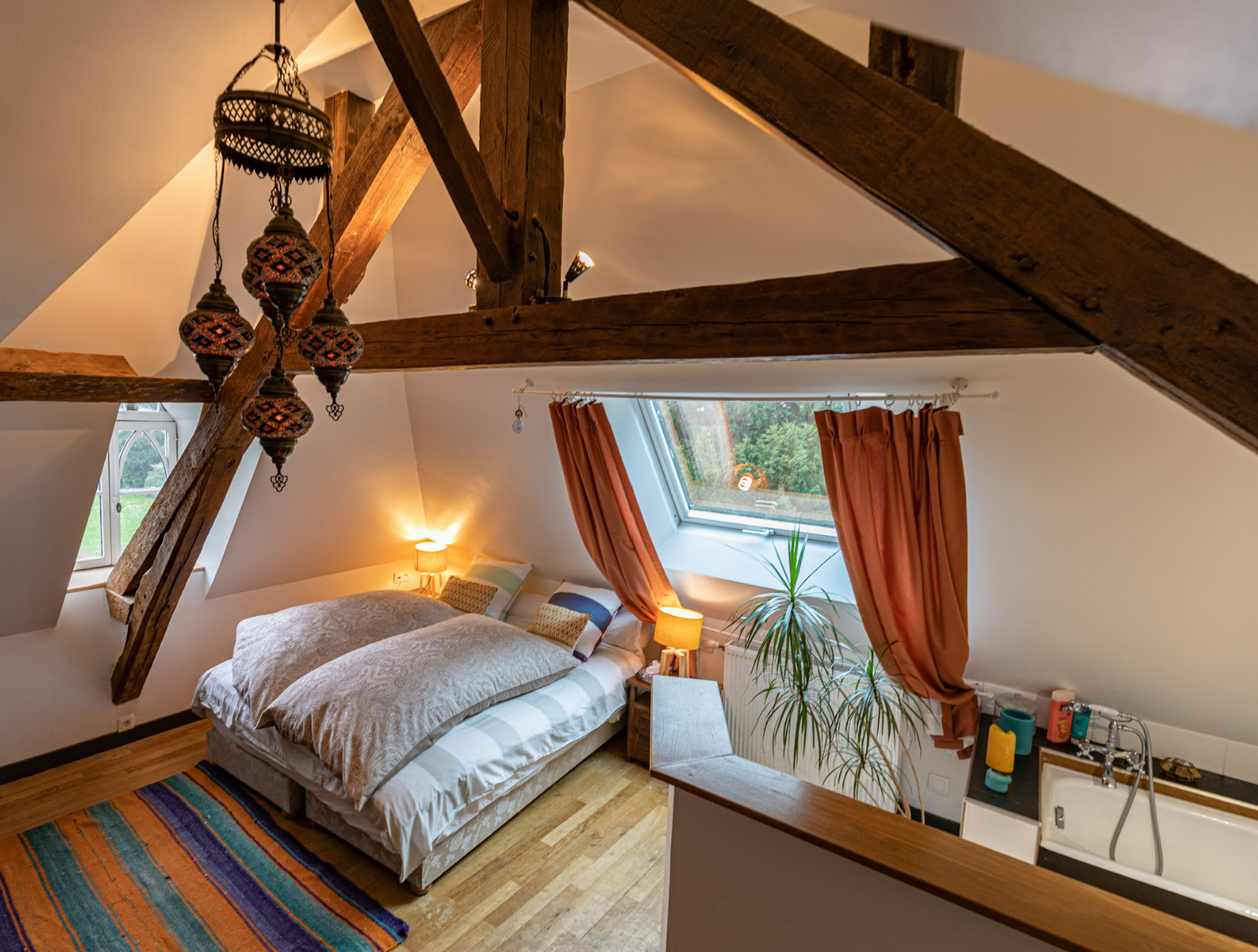 Une chambre typiquement normande où un petit loulou pourra s'ajouter sur un matelas au sol, dans la chambre, si besoin.