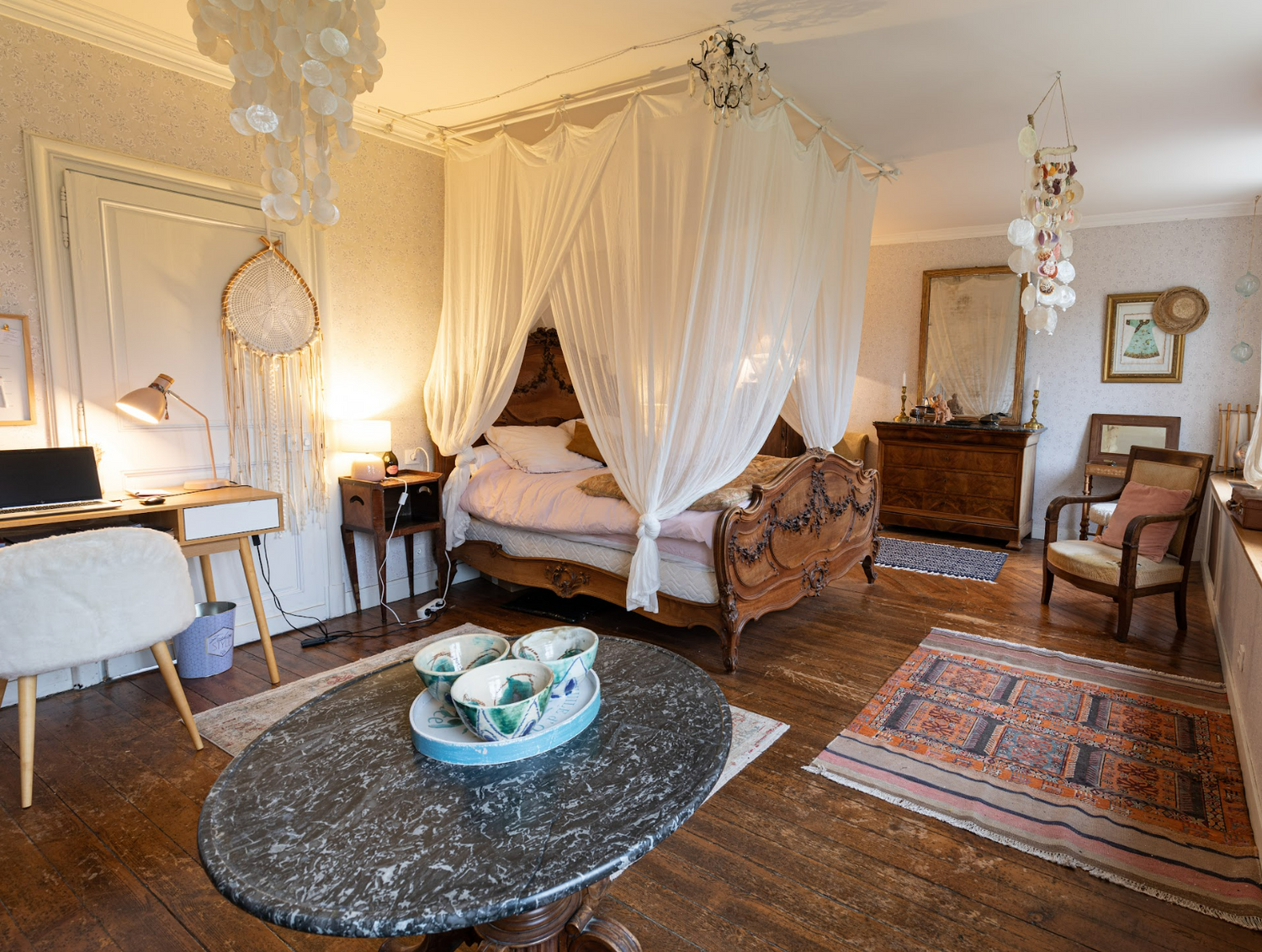Située tout au fond du dernier étage, il est souvent difficile d'en sortir les journées pluvieuses tant elle est confortable. Dotée d'un coin salle de bain avec baignoire pour la passion des bains moussants, un bureau est aussi présent pour travailler au calme. En séminaire, la proposer au BIG BOSS ;)