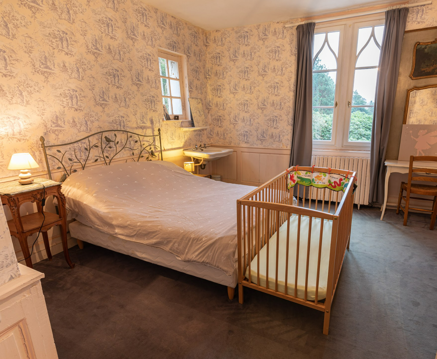 Cette chambre propose un lit d'enfant ainsi qu'une table à langer pour prendre soin de son nouveau né. Elle donne un accès rapide pour les réveils nocturnes à la cuisine pour ne pas déranger le reste de la famille.