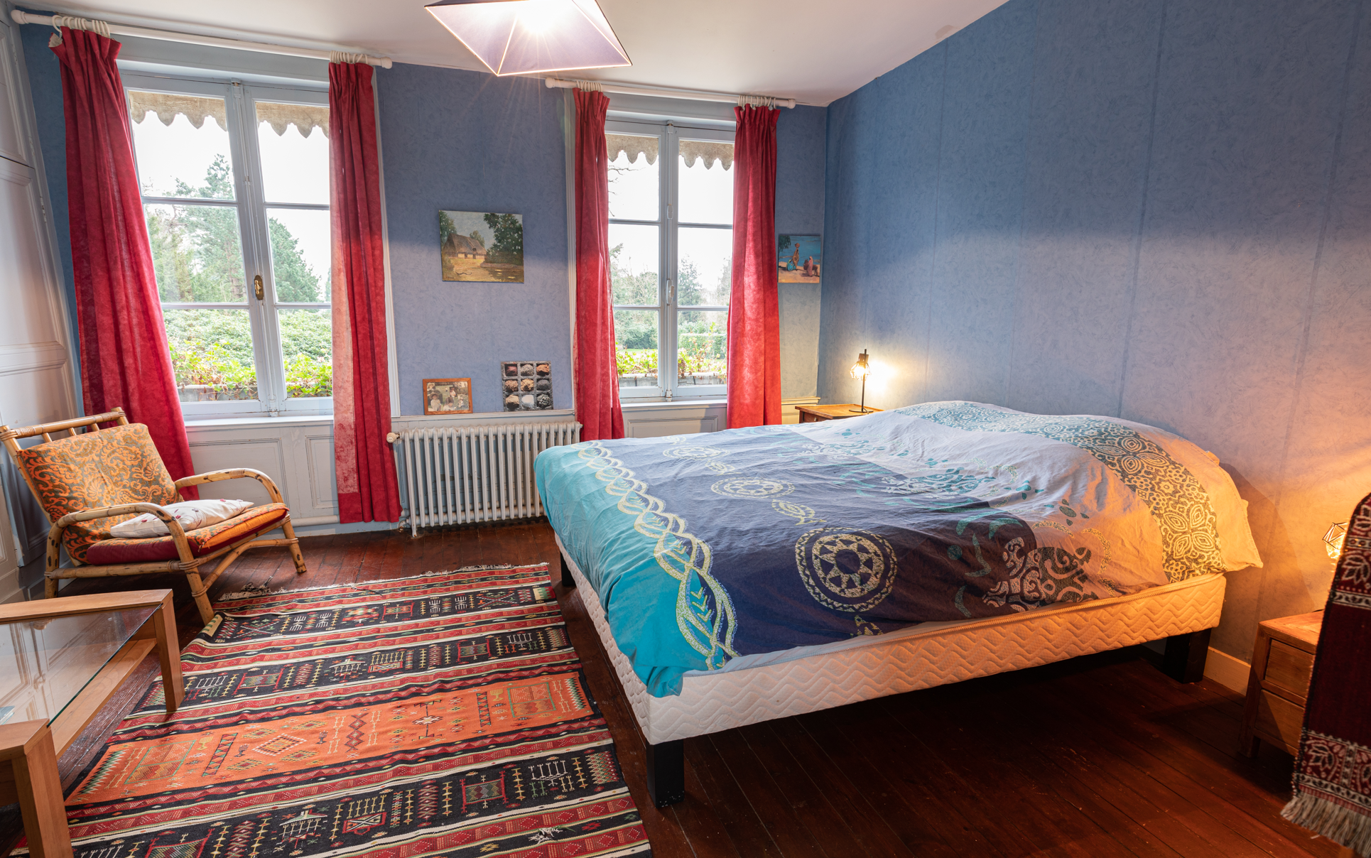 Une jolie chambre au lit très confortable donnant sur une vue très agréable du parc. Verrez-vous les lapins de bon matin ?