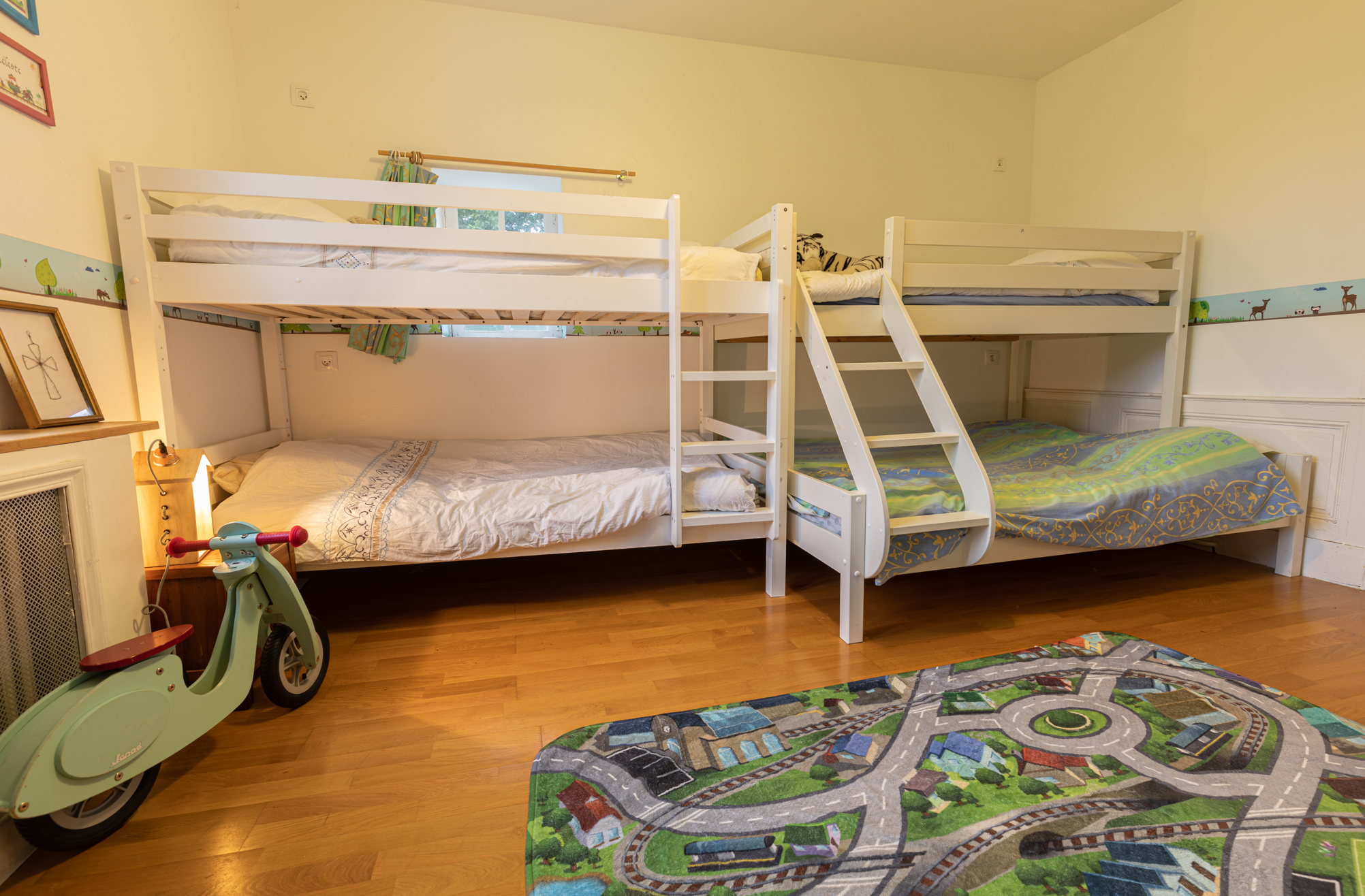 5 petits galopins pourront loger ici. Cette chambre est dôtée de 2 lits superposés dont un 1 lit deux personnes. Milles jeux et livres pour des après-midi bien remplies sont à disposition.